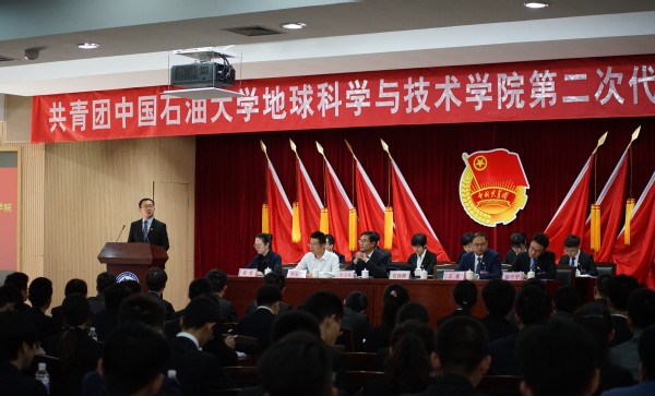 【本站讯】4月8日,共青团中国石油大学地球科学与技术学院第二次代表大会在逸夫报告厅召开。学校团委副书记石国卿、学院党委书记张卫东、学院党委副书记徐永涛受邀出席,全体团员代表全程参与本次大会。