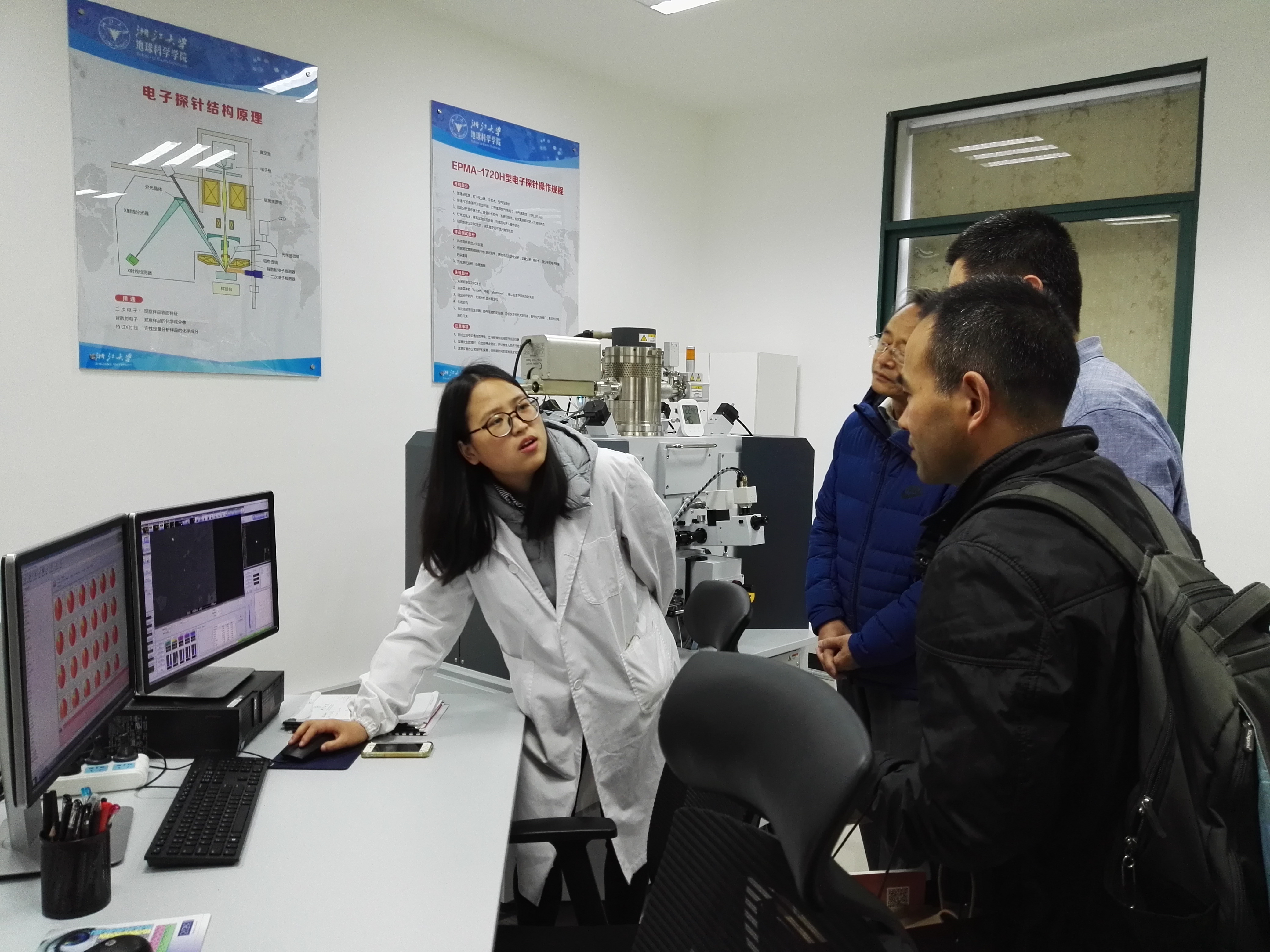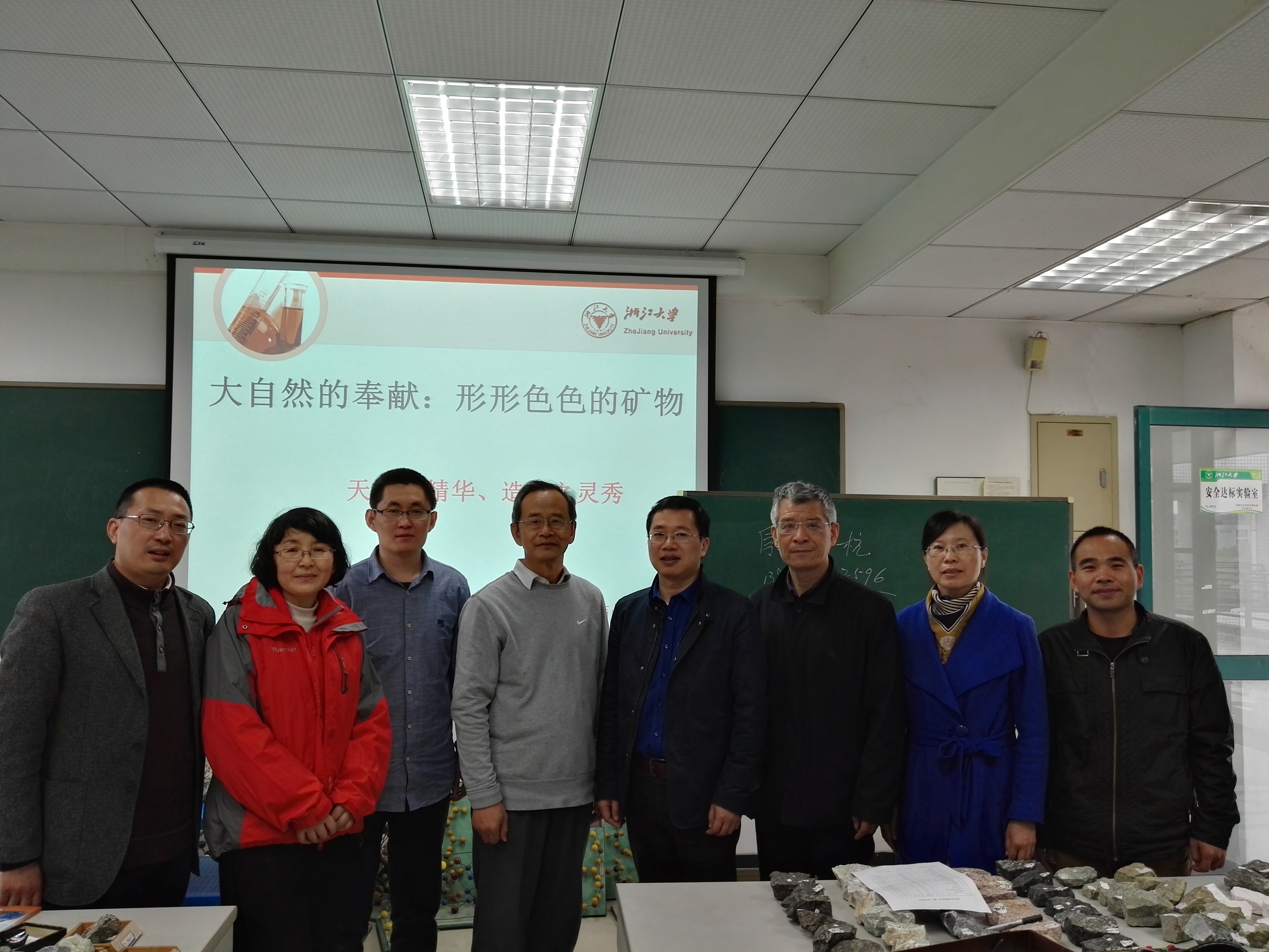 根据地质系教学工作安排,2018年4月13至15日由陈清华教授带队的地质系普地地化教学组教师一行五人赴杭州对浙江大学地球科学学院进行参观、访问和交流,受到浙江大学地球科学学院副院长程晓敢教授、沈忠悦教授、章凤奇副教授等教师的热情接待。在为期两天的交流学习过程中,双方教师分别就各自学院和专业的办学历史、办学现状、本科生培养、青年教师培养及课堂教学经验等方面进行了深入交流。双方教师一致认为,加强专业课教学,强化实践和技能训练,是提高学生专业素质的有效手段。双方教师也一致认为开展定期交流和合作野外考察备课,可以有效提高双方教师的教学和科研水平、更好的促进教学水平。会谈结束之后考察组参观了浙江大学地球科学学院的矿物学实验室、古生物实验室、岩石学实验室、图形图像处理实验室和大气科学实践中心等教学实验室,浙江大学特征典型的矿物岩石标本和多学科的融合交叉都给代表团留下了深刻印象。代表团还考察了浙江大学地球科学学院新建的离子探针和激光剥蚀等离子体质谱仪等科研实验设施。考察期间,恰逢第十九届浙江大学地球科学节地学开放日,考察组见证了多名知名学者通过矿物、岩石、化石标本现场向中学生展示地质学的奥秘,这是传播地球科学知识、加强招生宣传的重要举措。