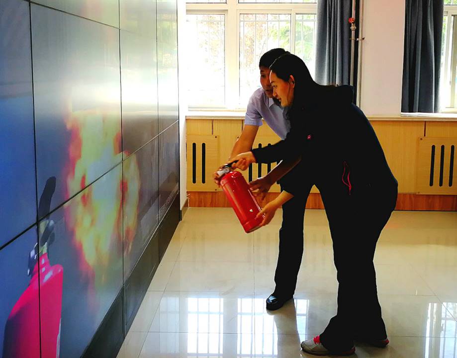 在安全教育教室中,校公安处石鹏飞老师对我校安全体验教室进行了简要的介绍,随后就火灾发生的原因、应对突发火灾的处置、逃生技巧及各种消防器具的使用等进行了详细的讲解。并以寓教于乐的场景式教学方式,组织老师们进行灭火器模拟演练和消防通道逃生体验,使消防演练不仅成为一次生动的消防安全教育,更是一次生动的实战教学。