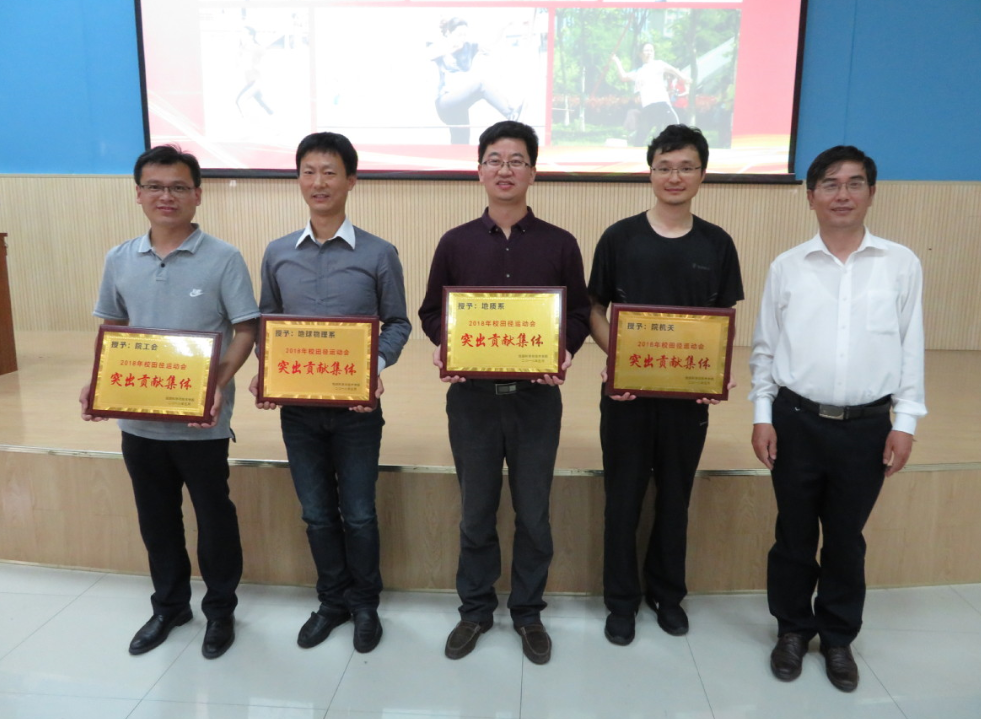 学院工会主席张军华宣读冰球突破豪华版官方网站地球科学与技术学院2018(4号)文件《关于表彰2017-2018学年体育工作先进集体和先进个人的决定》,对表现优异的14个先进集体和88个先进个人进行表彰,赞扬他们展现了地院人协作团结的团队精神和争当尖兵的精神风貌。