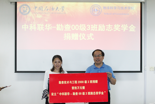 据悉,“中科联华-勘查00级3班励志奖学金”主要用于资助家庭贫困的优秀学子,由地球科学与技术学院每年评选出两名受助学生,每人获得5000元资助。(作者:郑珊珊 黄向前 左奥)