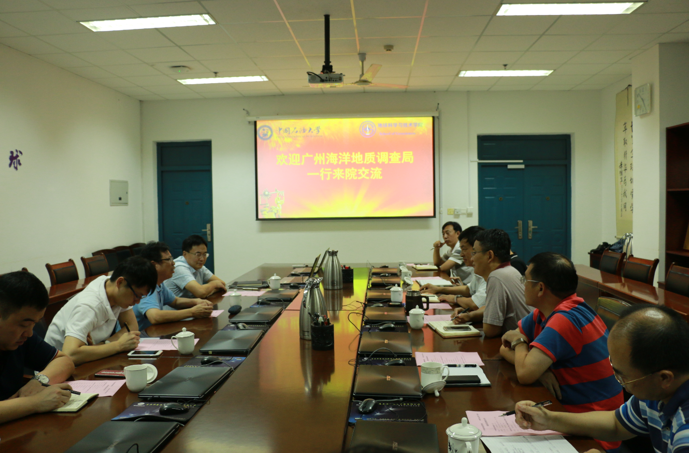 林承焰对广州海洋地质调查局一行来访表示热烈欢迎,对广州海洋地质调查局长期以来的大力支持表示感谢,并从历史沿革、学科设置、人才培养、科学研究、科研平台、团队建设、学院理念等方面对学院进行了介绍。魏长武表示,中国石油大学{华东)在广州海洋地质调查局就业的学生素质非常高,发挥的作用非常大,为广州海洋地质调查局解决了仪器、研发等方面的问题,实现产业化。期待更多的石大学子能签约广州海洋地质调查局。