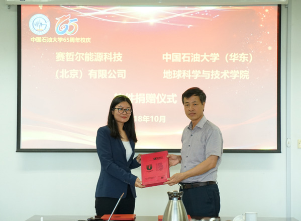 【本站讯】10月1日下午,地球科学与技术学院“赛哲尔能源科技(北京)有限公司软件捐赠仪式”在工科楼C座251会议室举行。捐赠仪式由学院副院长裴仰文主持,院长林承焰、党委书记张卫东、副院长邓少贵等出席捐赠仪式,我校89级校友、赛哲尔能源科技(北京)有限公司法人、总经理赵锋女士向学校捐赠该公司研发的“UniEarth储层岩石物理软件”,学院测井系、地球物理系的师生参加捐赠仪式。