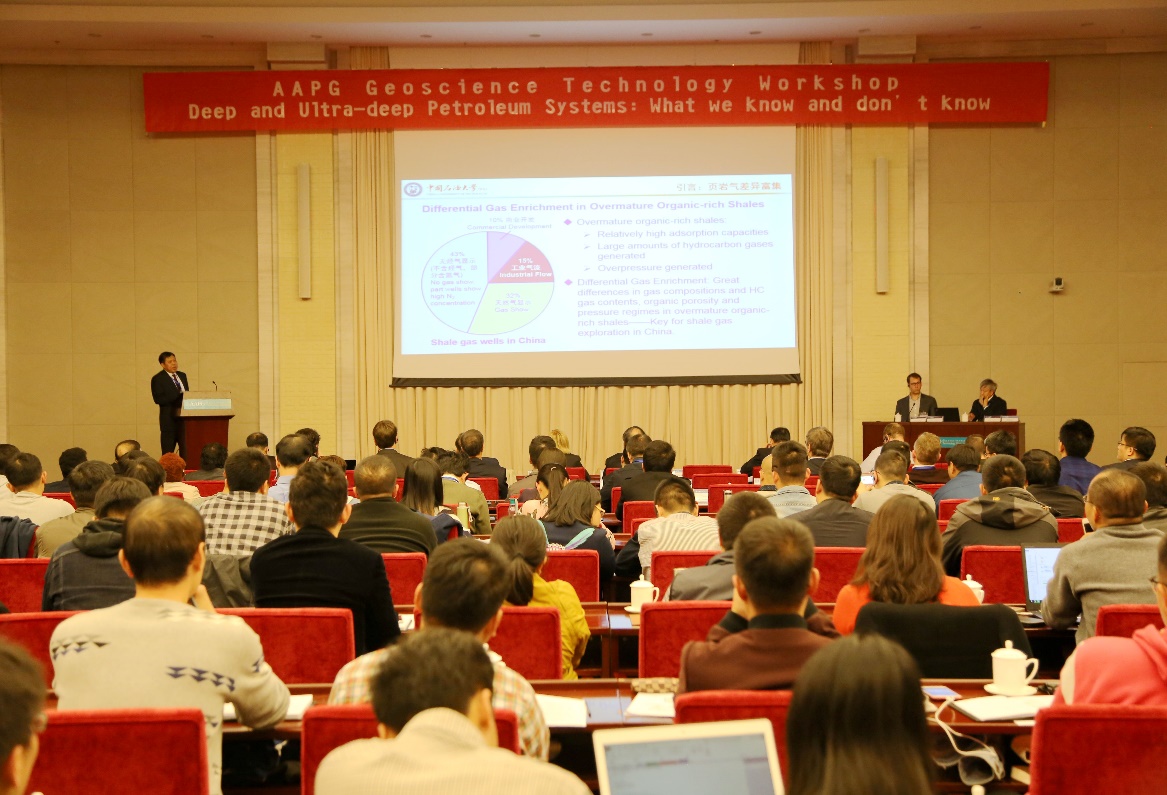 美国石油地质学家协会科技发展部主任Susan Nash教授、中国石油学会副理事长于明祥教授、冰球突破豪华版官方网站校长郝芳院士、中国地质学会石油地质专业委员会副主任何治亮教授出席会议并致词。中国石油勘探开发研究院贾承造院士,中国石化勘探开发研究院金之钧院士,冰球突破豪华版官方网站郝芳院士,俄克拉荷马大学Roger Slatt教授,中国石油大港油田总经理赵贤正教授,AAPG亚太地区副主席、马来西亚石油公司首席地质力学工程师Mark Tingay博士,俄罗斯石油研究院Oleg Batalin教授,Anadarko石油公司Mason Dykstra博士,中国石化集团公司科技部副主任何治亮教授等分别针对“深层—超深层含油气系统”主题作大会报告,对勘探开发过程中存在的问题进行深入交流。