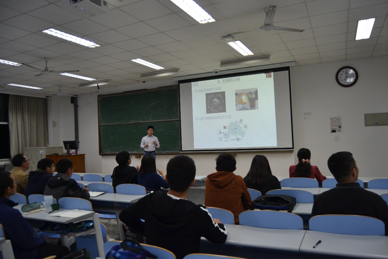 10月22日晚上召开的冰球突破豪华版官方网站研究生、博士生国际交流宣讲会由贺凯飞老师主讲,辅导员董晓真老师参加。贺老师从“为什么要出国学习”展开,从学科知识、经济来源、拓宽眼界几个方面为同学们介绍国内外学习生活的不同之处和国家为支持大学生、研究生和博士生出国提供的优厚条件。之后又为大家介绍了我校公派留学项目和国家奖励项目以及申请条件,并主要就即将开始申请的国家创新型人才国际合作培养项目进行了详细的讲解及动员;并鼓励大家打好语言和专业课基础,积极申请,希望同学们能把握时机,走出国门,学习学科前沿知识,努力成为国际人才,为建设双一流学科助力。