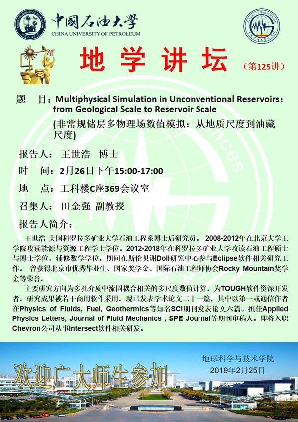 【地学讲坛第125讲】关于王世浩博士的学术报告通知