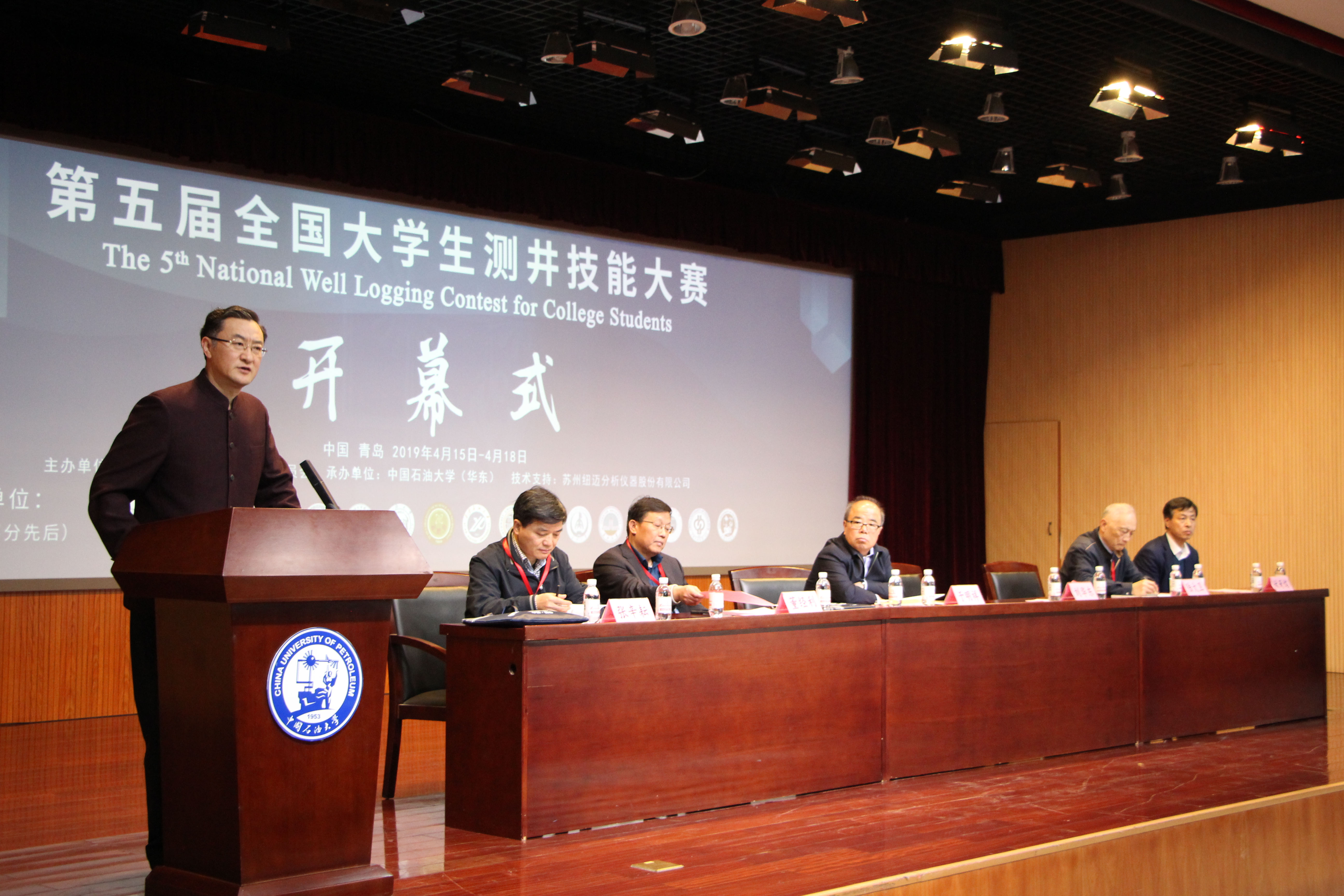 【本站讯】4月15日至18日,由冰球官网承办的第五届全国大学生测井技能大赛成功举行。我校党委副书记、副校长刘华东代表学校在开幕式上致欢迎辞,中国石油学会副理事长兼秘书长于明祥,大赛组委会名誉主任、中国石油学会测井专业委员会高级顾问、中石油集团公司咨询中心专家陆大卫,测井专业委员会副主任、中石化胜利石油工程有限公司首席专家董经利,学院院长林承焰教授等出席开幕式。