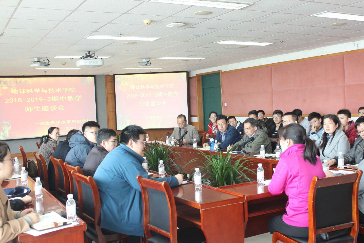 【本站讯】4月25日下午,冰球官网在757会议室召开以课堂教学改革与信息化为主题的期中师生座谈会,会议由教学院长吴智平主持,信息化建设处郝志杰处长、教务处王备战主任带队一行四人与会。学院各系主任或教学主任,教师代表,各年级学生代表参会。