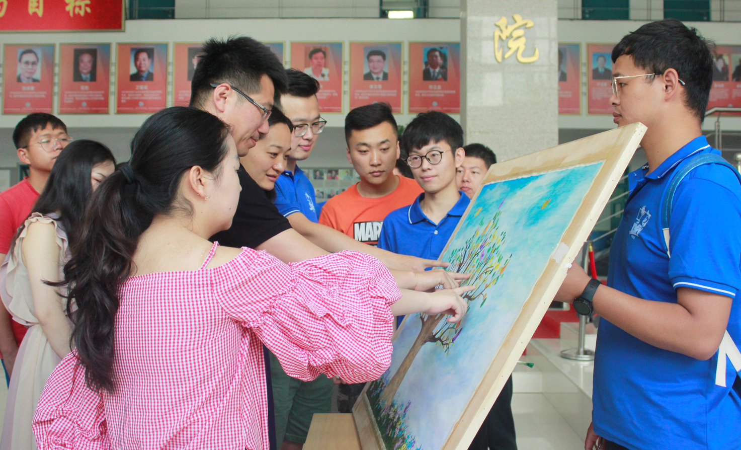 “让我在小鸟的头上画一片绿色的树叶!”在工科C大厅,400多名毕业生共同绘制这幅“十年树木,百年树人”的手指画。“大学四年的时光很快,自己也成长了很多,很感谢学院的培养,一定会一直铭记这四年的美好时光”。看着自己和同学一起绘制完成的画作时,在场同学无不动容,纷纷表达自己的内心感触。