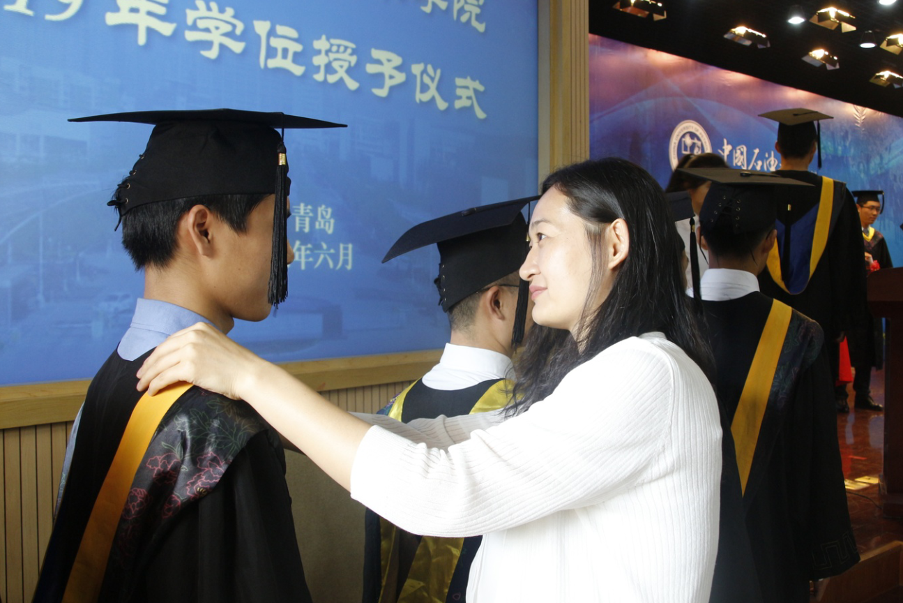 6月23日下午,冰球官网2019届毕业生学位授予仪式在逸夫礼堂隆重举行。仪式由学院副院长邓少贵主持。学院学位评定分委员会主席、院长林承焰教授,学位评定分委员会委员,教授委员会主席刘可禹教授共同为386名本科毕业生和287名硕士毕业生授予学位。