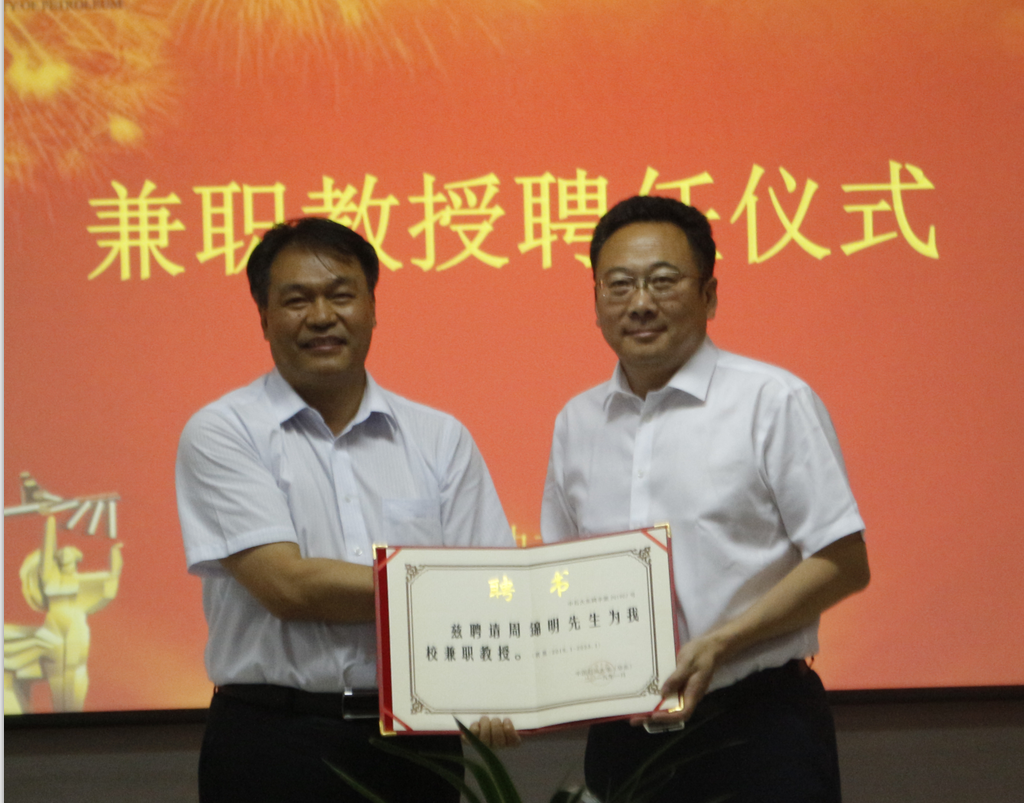 仪式上,周锦明表示,很荣幸能够受聘为学校的兼职教授,自己也将努力为学校取得更好的发展添砖加瓦。郭焦锋表示,自己一直很关心母校的发展,对母校的发展前景充满期待,也希望通过自己的努力为学弟学妹谋求更好的出路。