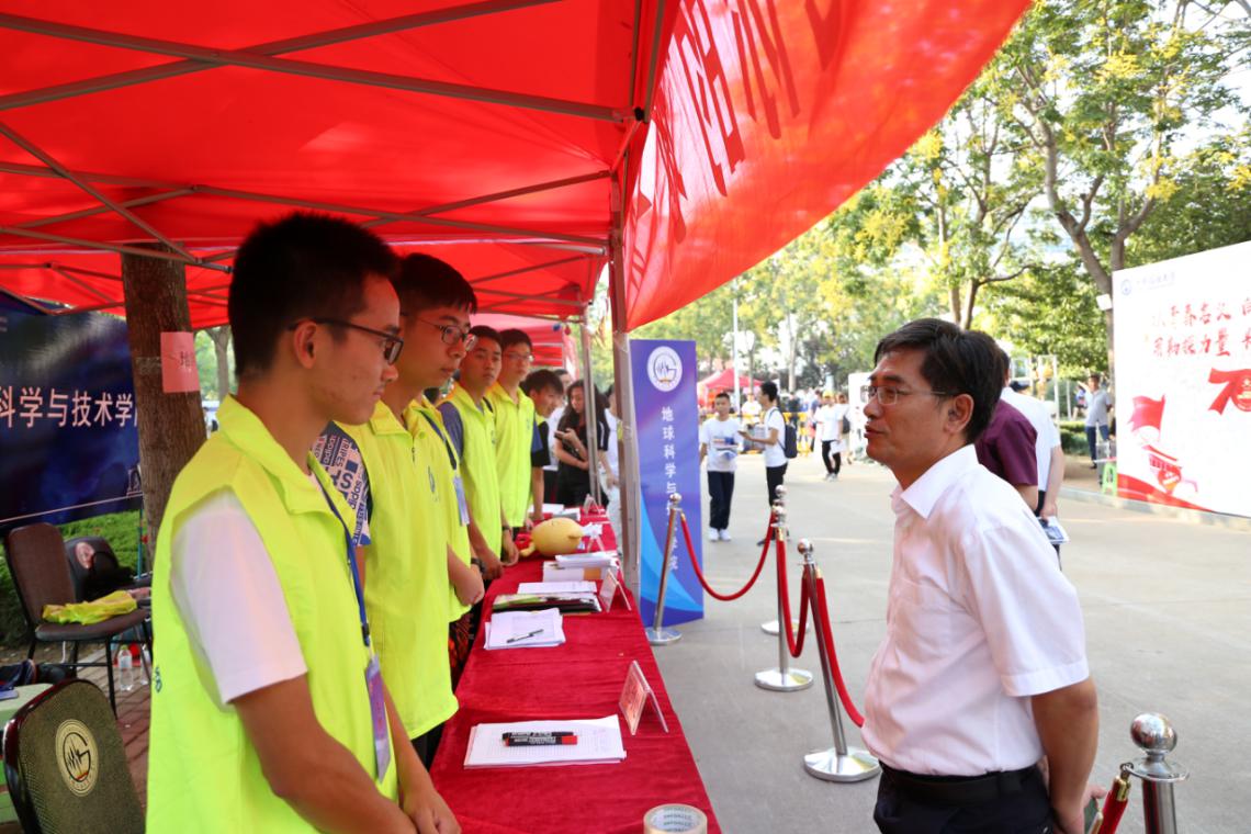 9月8日下午,地球科学与技术学院工作人员与志愿者早早守在迎新位点,整理好摊位,等候新生们的到来。9月9日上午学院党委书记张卫东、党委副书记徐永涛也一早来到迎新点,向前来报到的2019级新生表示热烈欢迎,并与他们亲切交谈。学院辅导员们全程在线,为家长解答疑惑、向新生提供帮助。