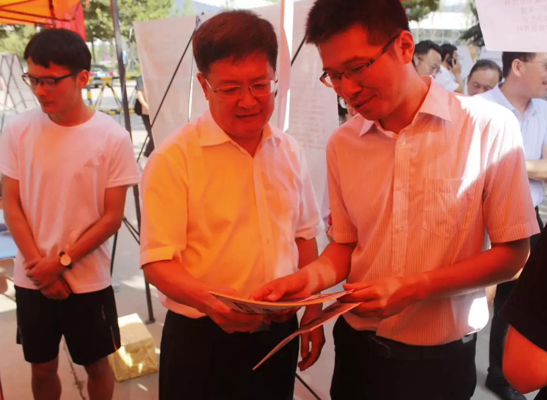 王勇书记在冰球官网迎新点处查看《卓越地标》 徐龙雨摄影