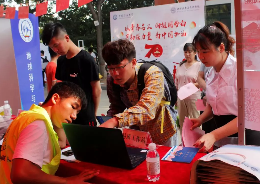 今年是新中国成立70周年,地球科学与技术学院学生会特别准备了“以青春名义向祖国告白,以勘探力量为祖国加油”的迎新展板,希望每一位新生将这份爱贯穿冰球突破豪华版官方网站、石大和祖国母亲,从入学的一刻起,继承石油人的责任担当和家国情怀,热爱伟大祖国,担当时代责任。前来报道的新生纷纷在展板前签字合影留念。不仅如此,校领导也在展板上签字,向祖国告白。