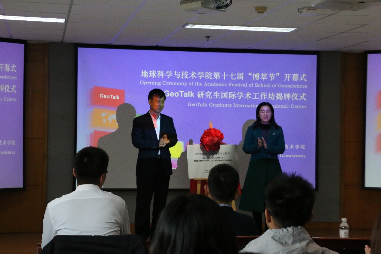 【本站讯】2019年11月18日下午,地球科学与技术学院第十七届“博萃节”开幕式暨GeoTalk研究生国际学术工作坊揭牌仪式在工科楼C座757会议室举行。本届“博萃节”围绕一流学科建设、“国际校园”实施计划,以“经纬国际·青年力量”为主题,以“名师有约”专家学者讲坛、“薪火相传”系列学术交流会、“博粹争鸣”系列学术竞赛、“风清气正”科学精神与学风建设、“博览众长”综合素质提升等五大活动体系为载体,培养研究生学术精神、开拓研究生国际视野。
