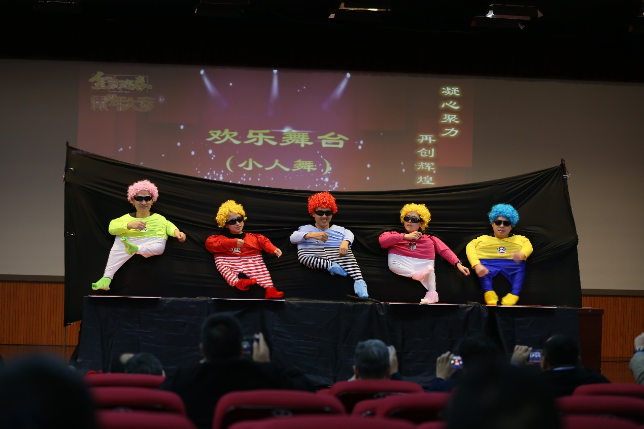 随后,新年联欢会在大学生艺术团激情洋溢的街舞表演中拉开帷幕,动感的节奏和活力四射的动作表现出当代大学生的青春魅力。地质系教师远光辉和夏鲁带来的相声《85后进站》用诙谐幽默的语言展现了青年教师青春昂扬、奋发拼搏的精神风貌。“锦绣河山美如画,祖国建设跨骏马,我当个石油工人多荣耀...”非常规油气中心教师合唱的《我为祖国献石油》,感染力十足,点燃了全场的豪迈激情。地球物理系教师表演的小人舞《欢乐舞台》将会场欢乐的气氛推向高潮,一个个“小人”诙谐的动作,再配上音乐串烧,让在场的老师们欢笑连连,纷纷举出手机记录这难忘时刻。资源系教师用独特幽默的“三句半”将2019年冰球突破豪华版官方网站的故事讲给每一个人听。在联欢会最后,测井系和院机关教师一起朗诵并合唱《我和我的祖国》,优美的旋律、深情的朗诵,表达了冰球突破豪华版官方网站广大教职工对祖国的热爱之情。