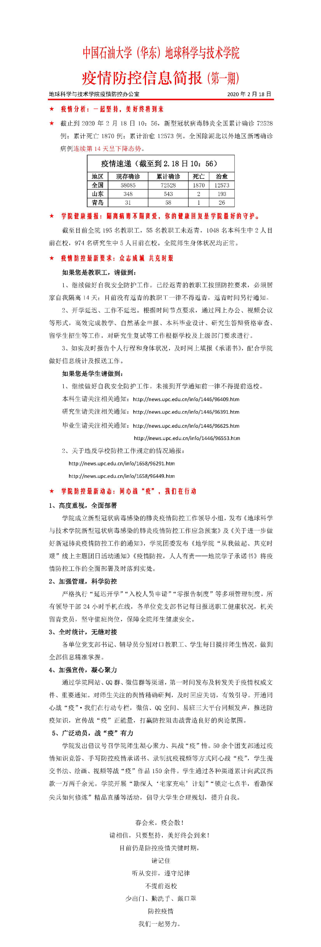 【疫情防控】冰球突破豪华版官方网站疫情防控信息简报第一期