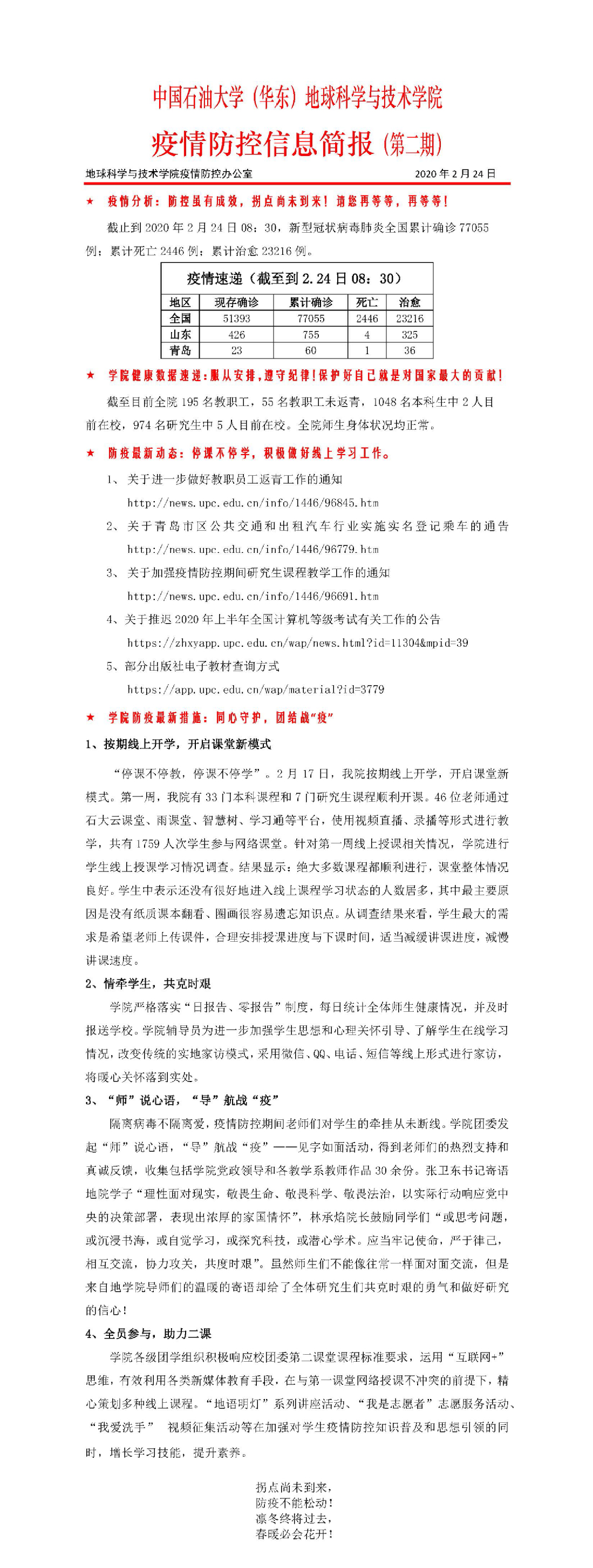 【疫情防控】地球科学与技术学院疫情简报第二期