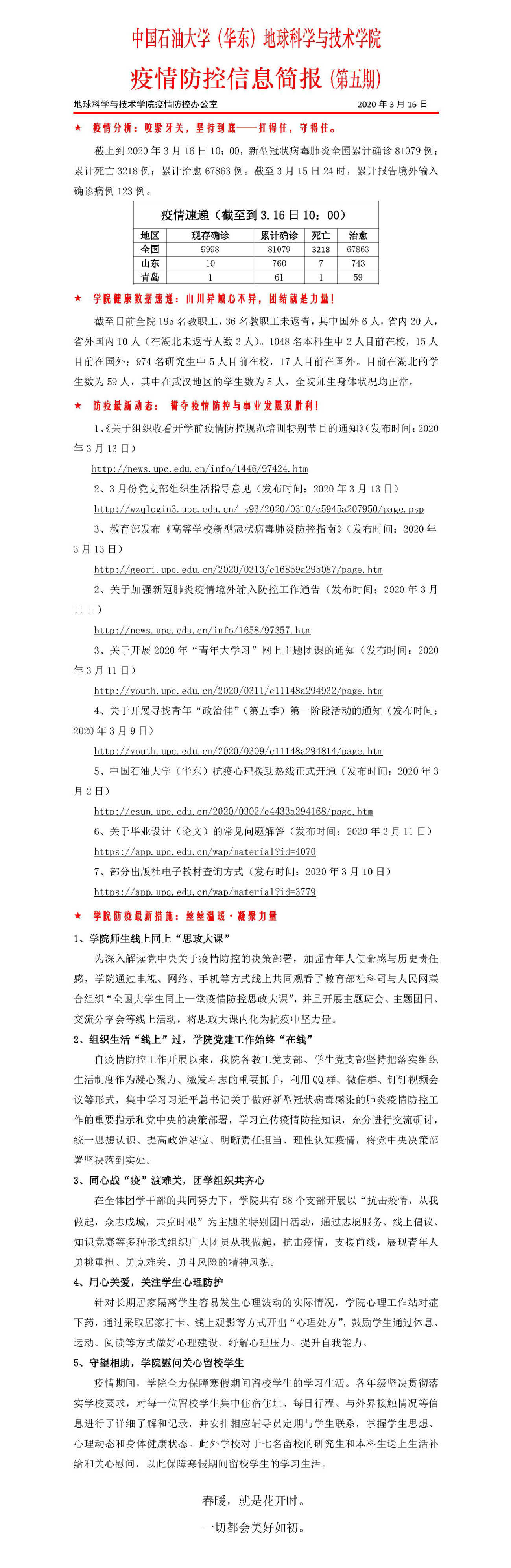 【疫情防控】 地球科学与技术学院疫情防控信息简报第五期