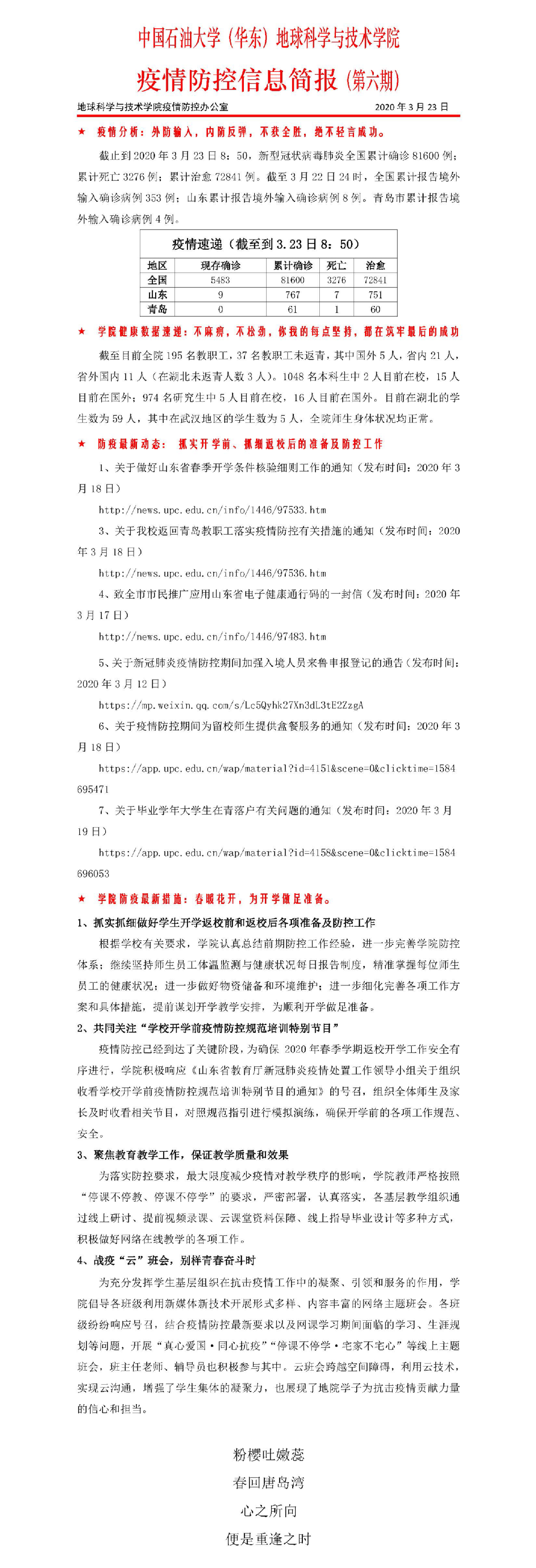 【疫情防控】地球科学与技术学院疫情信息简报第六期