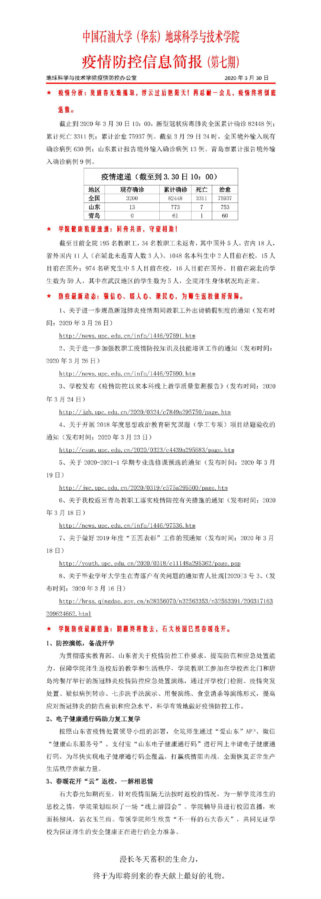 【疫情防控】 地球科学与技术学院疫情防控信息简报第七期