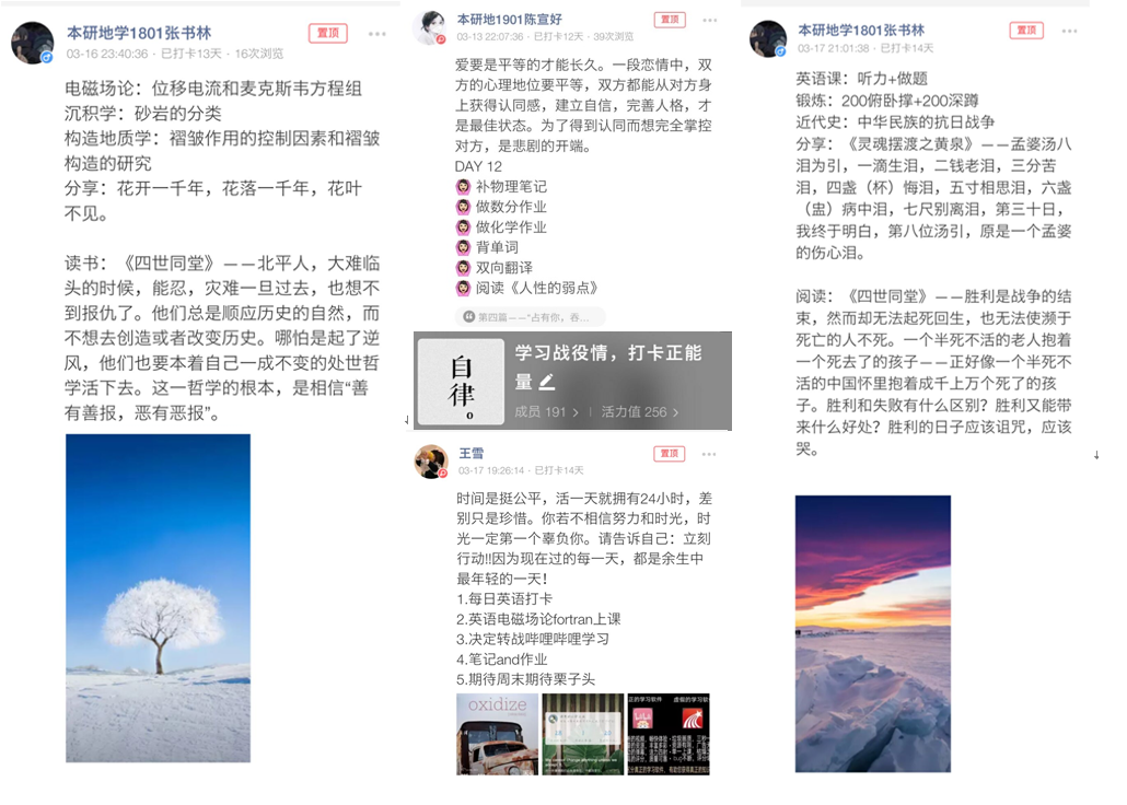 活动参与学生坚持打卡保持自律