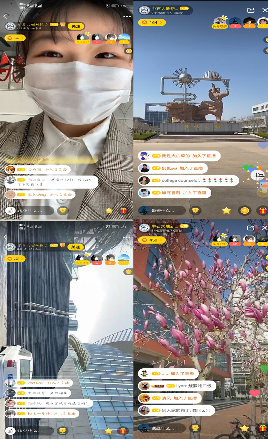 石大春光如期而至,针对疫情阻隔无法按时返校的情况,为一解学院师生的思校之情,学院学生会策划组织了一场“线上游园会”。吹面杨柳风,沾衣玉兰雨。学院辅导员范静蕾通过QQ直播的形式带领石大学子和校友们欣赏“不一样的石大春天”。共同见证学校为保证师生的安全健康正在进行的全力准备。