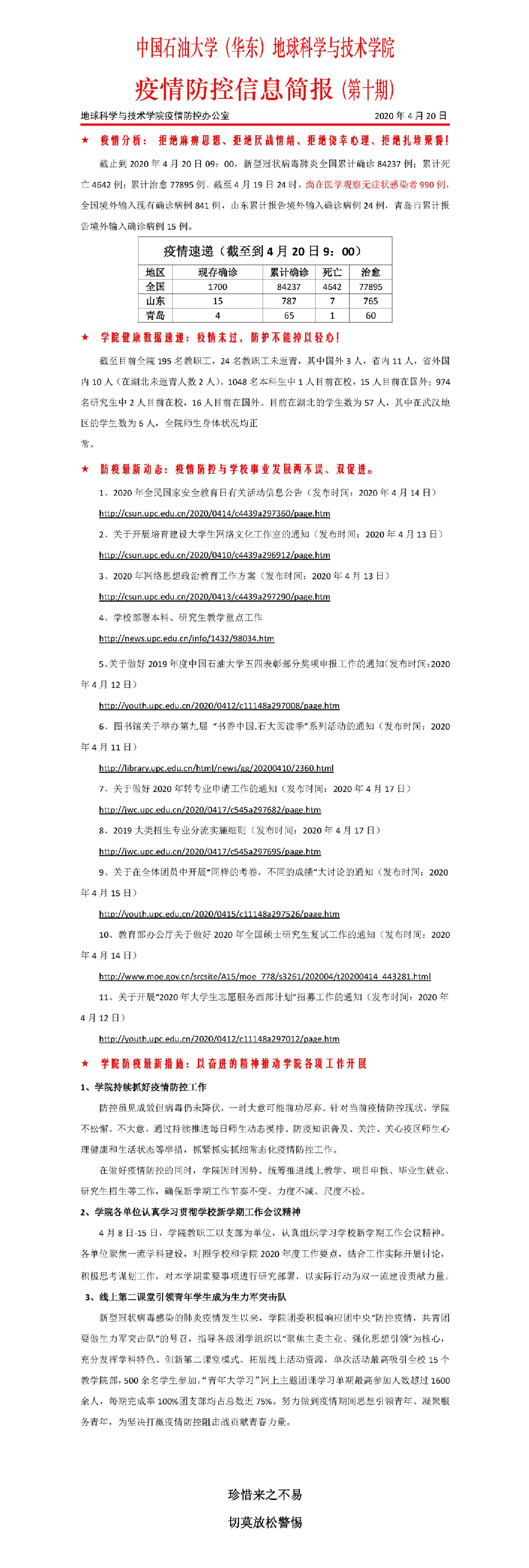 【疫情防控】 地球科学与技术学院疫情防控信息简报第十期