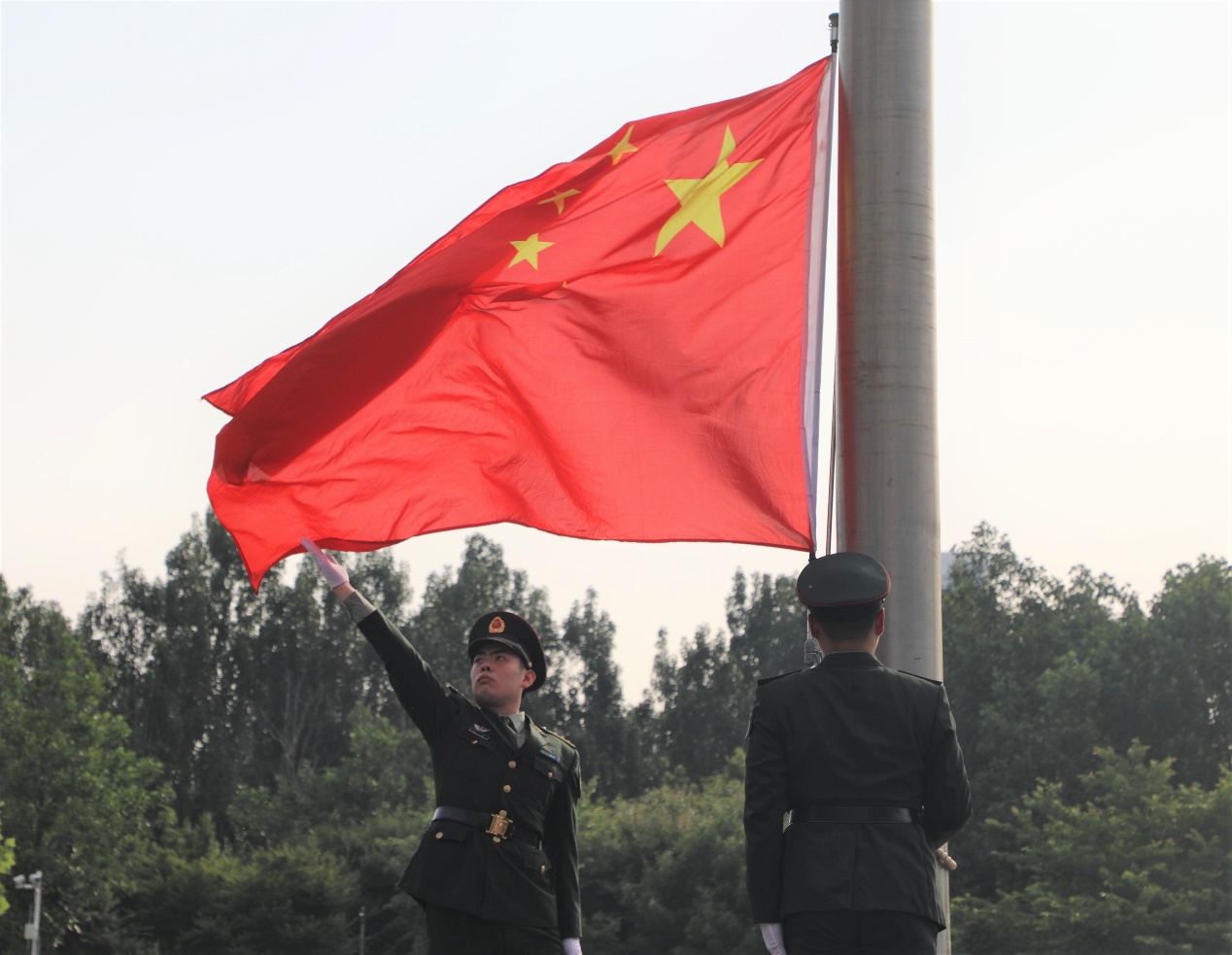 图一:国旗广场升旗仪式正在进行 潘奕铭摄影