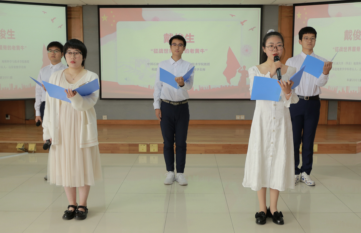 “我志愿加入中国共产党…”《中国石油测井之父——王曰才》话剧表演同样感动了现场师生。四幕话剧、多组画面,本研(地学)1901班的6名学生将与会人员拉回到王曰才先生学成回国、报效玉门、光荣入党、耕耘教育的历史情境中,“在我扎根玉门油田后,感受到党组织对我的信任和支持,更加坚定了中国共产党就是我一生的归宿的信念,希望党组织能够接纳我。”剧中王曰才的扮演者、本研1901班王建祥表示,在整理、学习、表演王曰才先生的事迹过程中,我更加感受到他在发展中国石油测井工业和教育事业中体现出的呕心沥血、忘己奉公的精神品格。