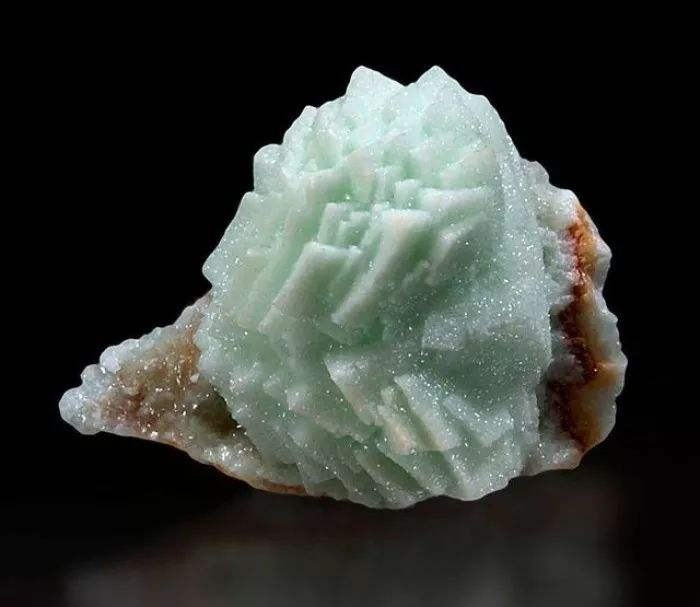 形态:常以良好晶形出现。如六方柱, {0001}底面,和等菱面体,以及复三方偏三角面体等。若星片状或薄板状者称为层解石。以为双晶面的负菱面聚片双晶或接触双晶极为常见。前者多为滑移双晶(见白云石)以 (0001)为双晶面的方解石律接触双晶也较普遍,以为双晶面的接触双晶则少见。集合体常呈晶簇状、片状、粒状、块状、钟乳状(称钟乳石stalactite)、结核状等。