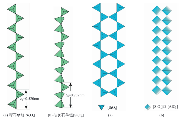 单链硅氧骨干和角闪石双链与矽线石双链硅氧骨干