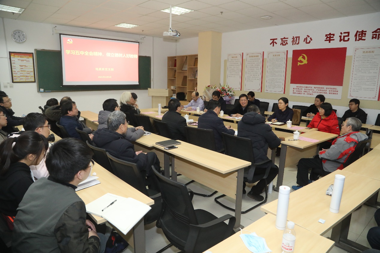新年伊始,地质系党支部于地质系会议室开展“学习五中全会精神,做立德树人好教师”专题活动。校党委书记王勇、组织部部长张卫东、冰球突破豪华版官方网站党委书记刘华、副院长邓少贵、地质系党支部全体在校党员及民主党派人士等参加专题组织生活。会议由支部书记陈勇主持。