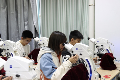 初赛以闭卷考试的形式考查选手专业知识掌握情况以及地质技能综合应用能力,试卷内容涵盖地球科学概论、古生物学、沉积学等相关知识。复赛则综合考察选手对于专业知识的掌握情况及动手操作能力。实验室中,参赛选手对各类岩石、矿物和古生物化石手标本及岩石薄片标本进行现场识别分析并提交鉴定报告。比赛过程中,选手们全神贯注,心无旁骛地观察岩石标本,有条不紊地操作显微仪器,结合自身所积累的地质知识完成报告。