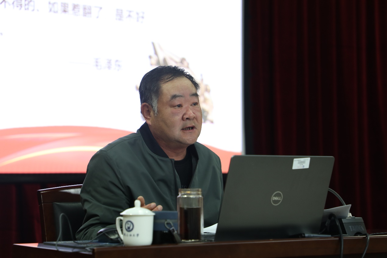 本期报告会由地球科学与技术学院承办,邀请学校教师“星光”宣讲团成员、马克思主义学院副教授张卫军作题为《毛泽东奠基新中国的三大战略决策》的专题报告。