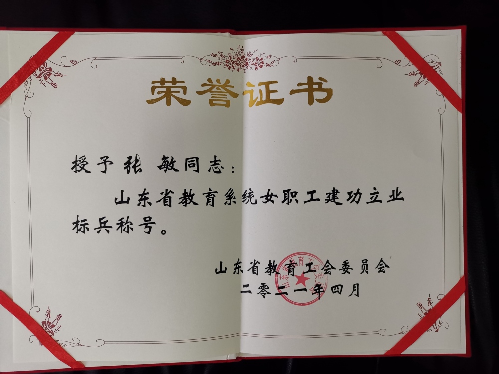 山东省教育工会女职工建功立业标兵——2021年张敏