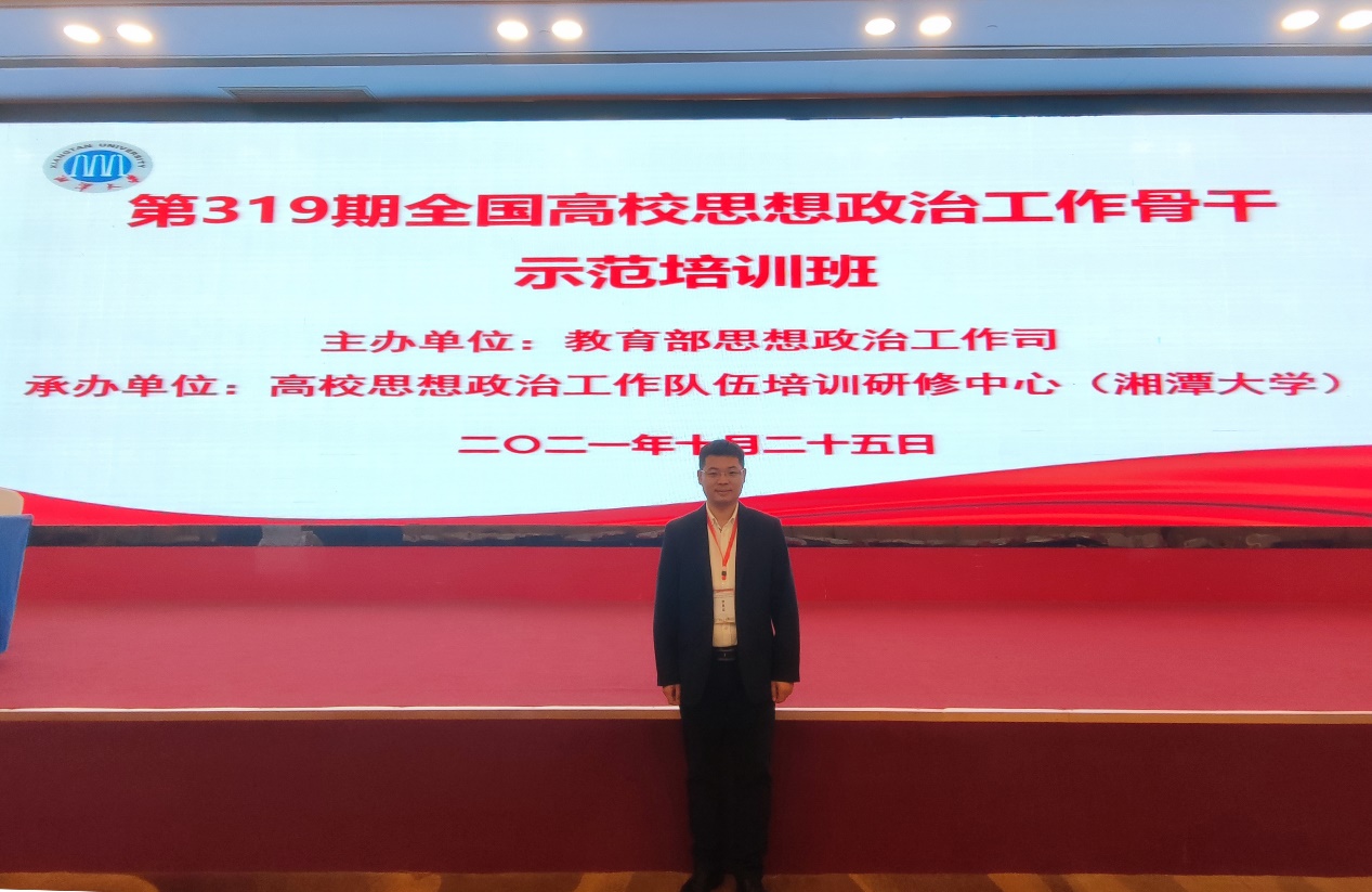 10月24日至27日,冰球官网辅导员任金恒赴湖南省湘潭市参加第319期全国高校思想政治工作骨干示范培训班,就“传承弘扬中国共产党精神谱系”进行了专题学习并顺利结业。