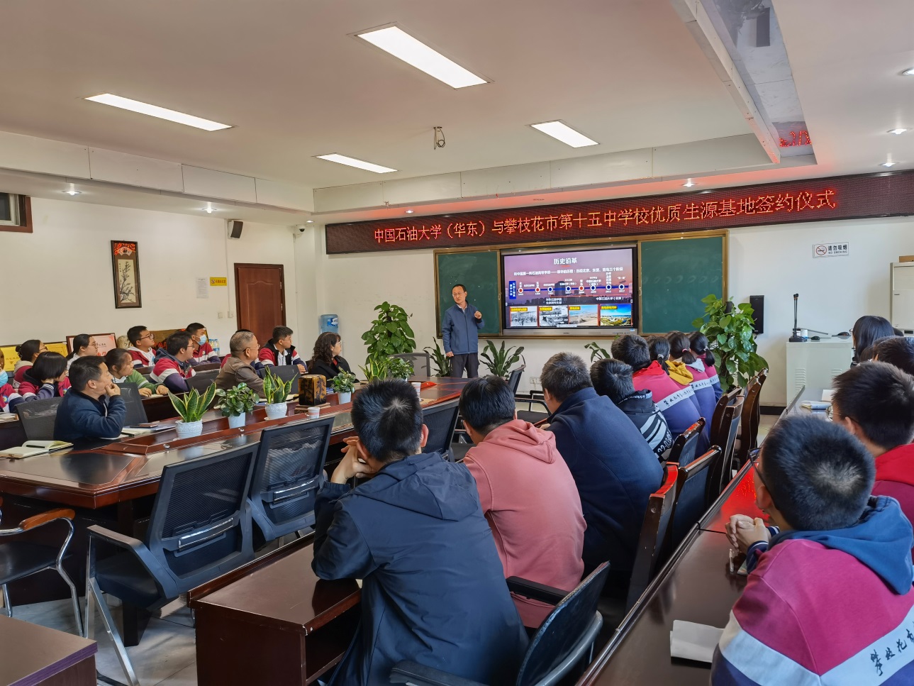 在攀枝花十五中学,龚安老师为成绩优秀的学生们作了《遇见石大,未来可期》的宣讲报告,让学生们多角度、全方位了解冰球突破豪华版官方网站,激励学生认真学习,引领优秀学生加盟学校。
