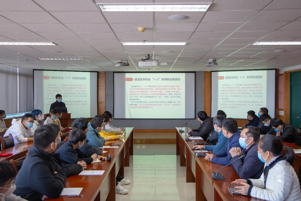 资源系副主任刘景东介绍了“1+2导师制”实施细则,他说道:“导师制是充分调动全系教师发挥育人作用,为学生在校期间提供全方位指导,建立新型师生关系的重要举措,也是建设优良学风,提高本科生人才培养质量的重要途径。”
