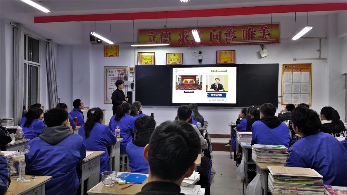 冯家乐于山西省吕梁市柳林县鑫飞中学讲解资助政策