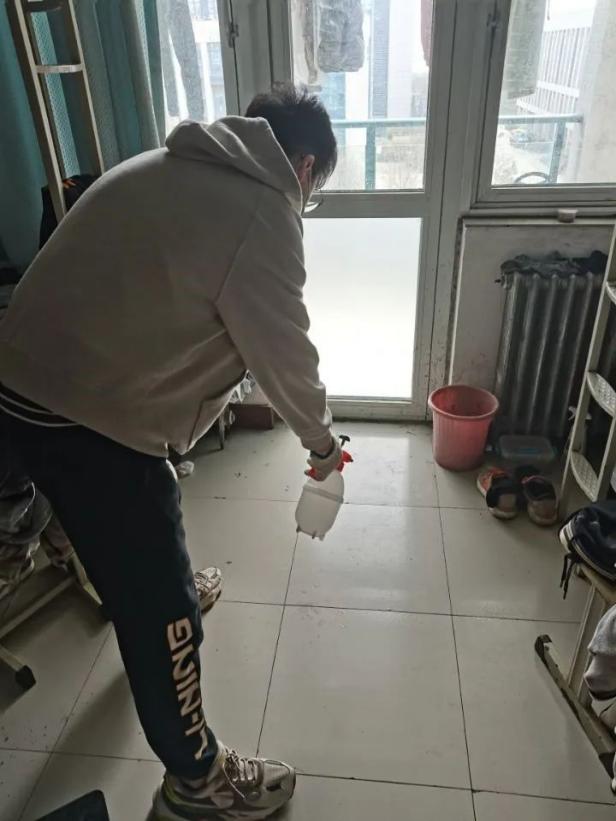 在餐厅取消堂食期间,学生党员积极服务就餐同学,参与就餐排队引导工作,使得学生就餐行为安全高效,进一步保障学生饮食安全。同时,为进一步加强疫情防线,学院对宿舍与科研区域进行定点定时消毒,学生党员发挥带头模范作用,带头对宿舍及办公室进行消杀,并及时将学院发放的口罩送到学生手中,确保了宿舍与办公室环境安全。