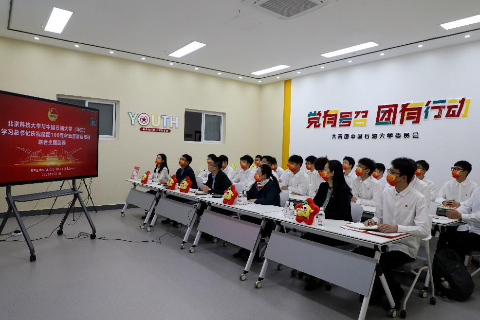 为庆祝中国共产主义青年团成立100周年,引导广大团员青年深入学习领会习近平总书记庆祝建团100周年重要讲话精神,5月11日下午,我校与北京科技大学联合举办“学习总书记庆祝建团100周年重要讲话精神”主题团课。北京科技大学团委书记王鹂、副书记于林民,我校团委副书记姜士绅、组织部部长刘秋蘅,学院党委副书记郑珊珊、团委书记王力禾参加团课,冰球官网资源勘查工程2001团支部、本研一体(油气资源类)2001团支部成员现场参加团课学习。