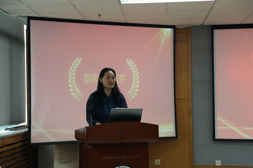 会议伊始,接着,党委副书记郑珊珊宣读表彰决定,她希望受表彰的集体和个人珍惜荣誉,再接再厉,在今后的学习和工作中,取得更加优异的成绩。也希望全院学子以先进为榜样,积极参与学校、学院的各项活动,切实发挥龙头学院的引领作用,为学校双一流建设做出更大的贡献。