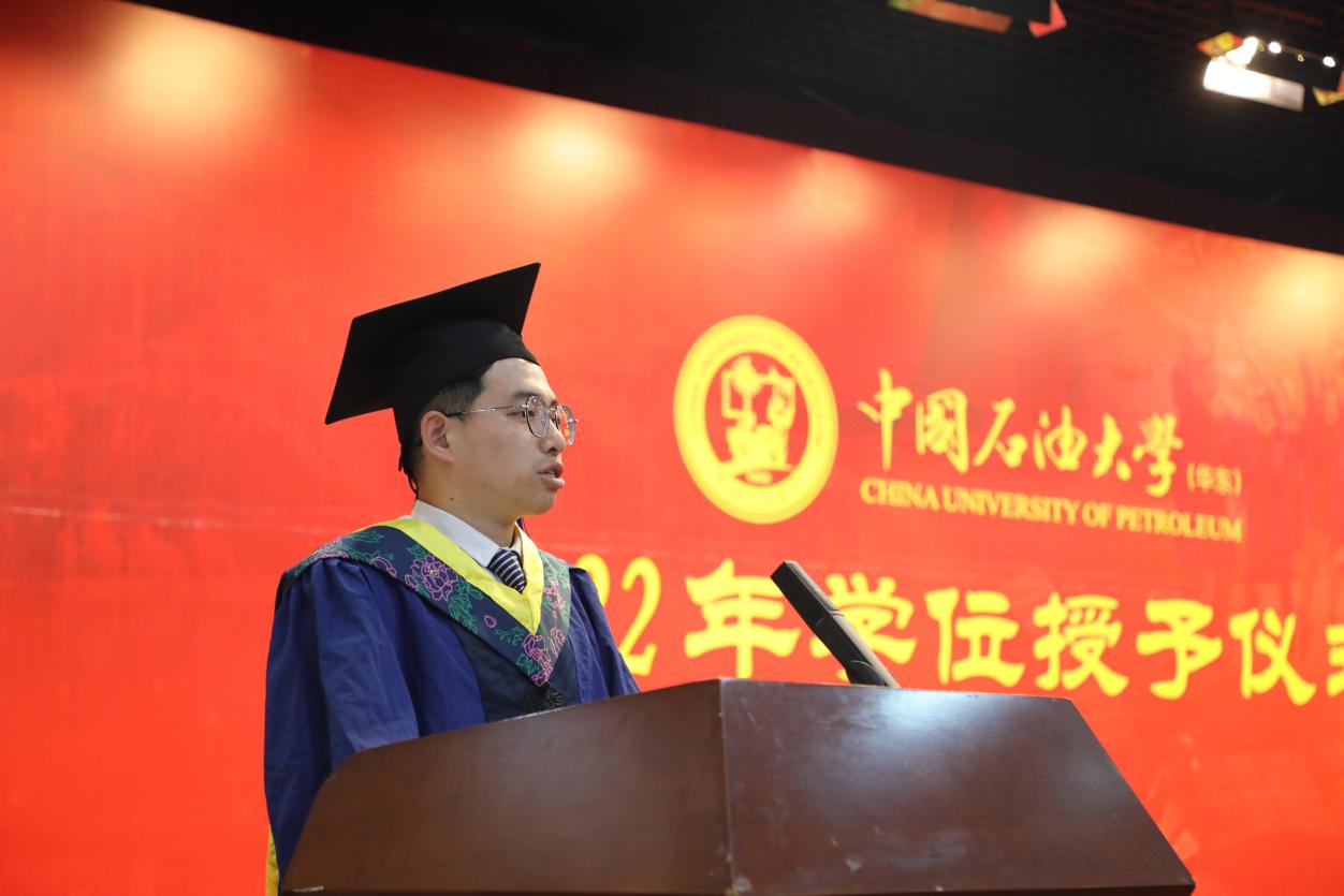 “浸润在学院浓郁的学术氛围和深厚的文化底蕴中,我们迅速成长为视野开阔、知识广博的新一代,敢于实践、勇于创新的新青年。虽然我的学生生涯已经结束,但我奔赴祖国需要的地方的奋斗才刚刚开始。未来,我们不论身处任何行业、在何岗位,只要带着学院给予我们的勘探精神烙印,一定能劈波斩浪、勇毅前行!”研究生代表、地质资源与地质工程专业魏永波在发言中表示。