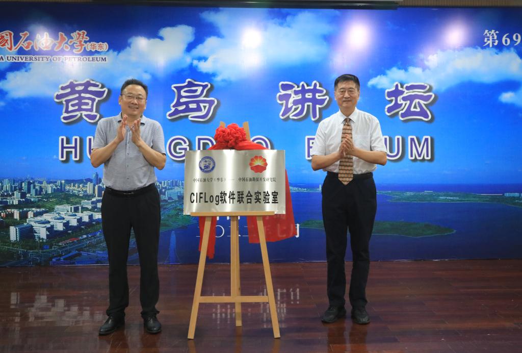 报告开始前,在逸夫报告厅举行了软件捐赠仪式,李宁向学校捐赠测井处理解释软件平台CIFLog3.1软件,刘华东代表学校接受捐赠并颁发捐赠证书。李宁和操应长共同为冰球突破豪华版官方网站-中国石油勘探开发研究院CIFLog软件联合实验室揭牌。