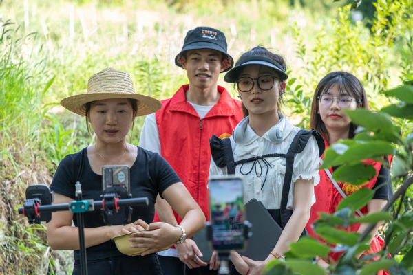 实践队成员在李子林进行直播助农