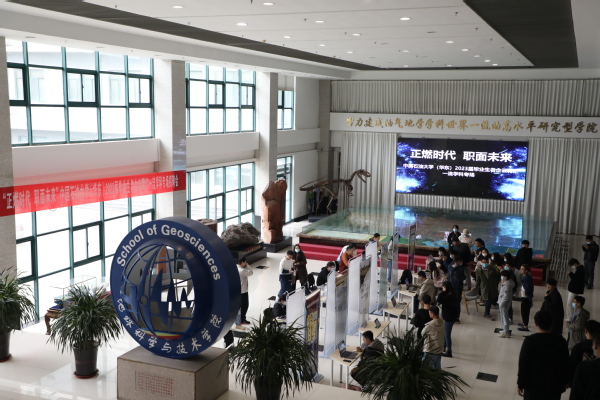 正燃时代,职面未来。11月11日,学院举办2023届毕业生名企云聘汇一流学科专场招聘会,中国石化胜利石油管理局有限公司、中国石化江苏油田分公司、中国石化集团华东石油局、中国石化镇海炼化分公司等12家企业,在学院一楼大厅依次布展,通过云端对话的形式,在线与毕业生一对一线上交流。