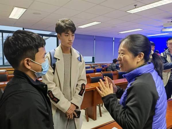 在师生自由交流环节,学生就自己遇到的问题以及未来规划的困惑,向老师请教,师生交流气氛融洽。会后,师生分别合影留念,并进行更深入的交流。