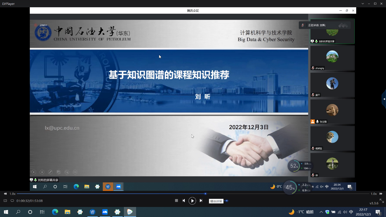 冰球突破豪华版官方网站计算机学院软件工程系副主任刘昕副教授作了题为“基于知识图谱的课程知识推荐”的精彩报告。刘老师首先介绍了知识图谱和思维导图的差异及知识图谱的发展、构成要素等;详细介绍了知识图谱的构建,包括本体构建、知识抽取、知识融合、知识更新和知识存储;展示了《人工智能导论》课程案例、软件工程培养方案案例、油藏工程管理、天然气标准知识图谱等科研案例,和与会教师探讨了如何构建基于知识图谱的数字化课程。