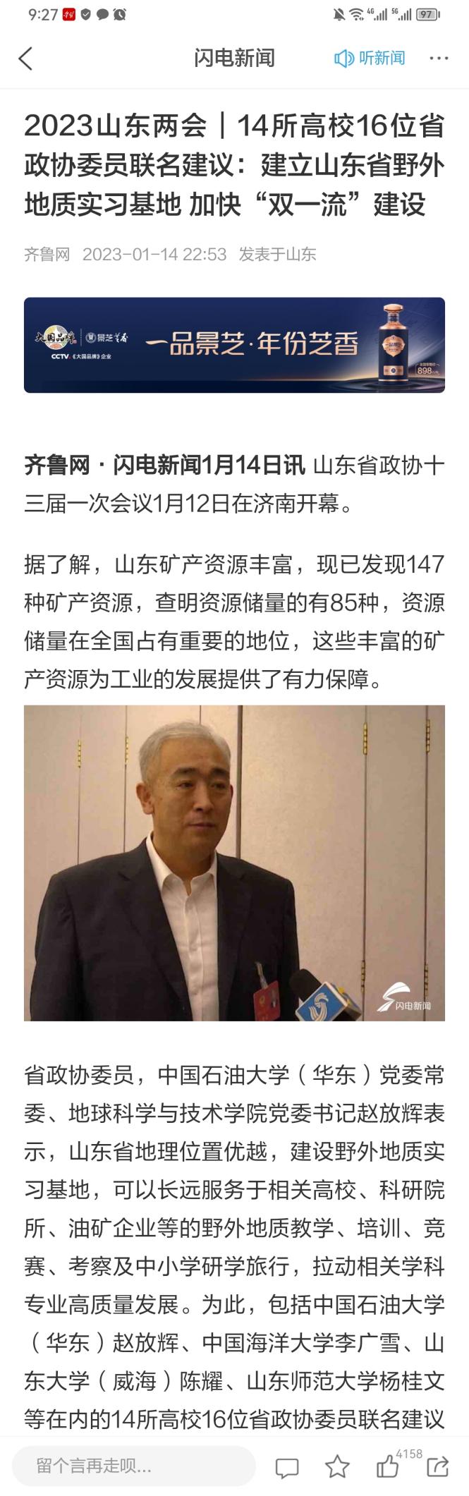 相关链接:齐鲁网:真知灼见现场声丨省政协委员赵放辉:加快地质资源与地质工程一流学科建设https://sdxw.iqilu.com/share/YS0yMS0xMzk4NDUwOQ==.html
